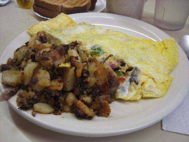 The garbage omelet at Nancy’s, roundish on the ends and high in the middle, is reason enough to visit the buckeye state. Poke around inside to find a liberty garden’s worth of vegetables and the meat six-pack. Nice melty cheese glues the works together.