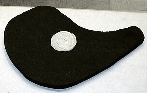 The painted white dot shows where the center of mass of the pork chop is. The pork chop is thrown and students observe the parabolic behavior of its center of mass, no matter how the chop is thrown.