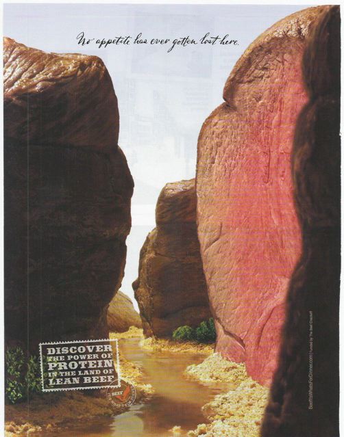 1. I can honestly say this ad looks “overwhelming” it does more to gross me out than make me crave meat. It’s just too big and too much. Bad ad.