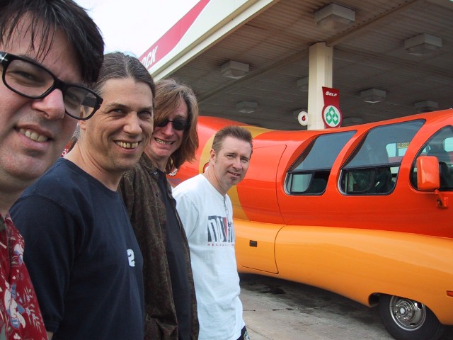 The wienermobile fueling up was posted and ~bing~ this image came through on my Blackberry. Synchron-oscar-icity! Eric “Roscoe” Ambel looks proud of his midwestern heritage. Uff-dah!