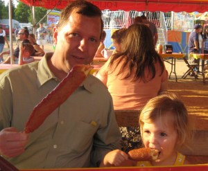 The foot-long-er repulses me a little, but Jon loves em. Once he actually ate TWO. They were good corn dogs tho — dipped in batter and dropped in oil right in front of our eyes.