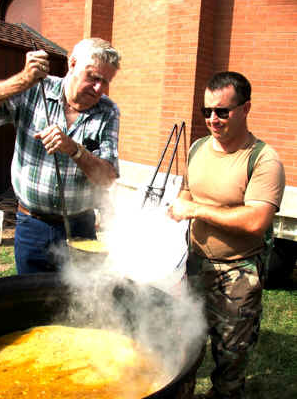 I just bought $15.00 worth of Booyah (1/2 gallon) at the high school. It is a fund raiser for the dance team. Booyah is a Green Bay original. It is a chicken vegetable soup or stew cooked in big caudrons outside over a wood or gas fire. It has been around forever and is probably Belgian in origin but I am not certain. There are different secret recipes all over town so sometimes the organization selling it will call theirs “Herman’s Booyah” or “Larry’s Recipe Booyah”.This booyah was generic but very good. Even Karin ate it and raved about it. I like it when the soup does not have skin, bones or feathers in it.