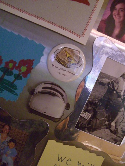 Dixie Chick Katie did her bit for the economy by buying me a gift. What would we do without refrigerator magnets (or without Katie?!)? And refrigerators to stick them on? At our house the fridge is our gravitational center. Fwoooop, we are pulled towards it day and night, arms outstretched.