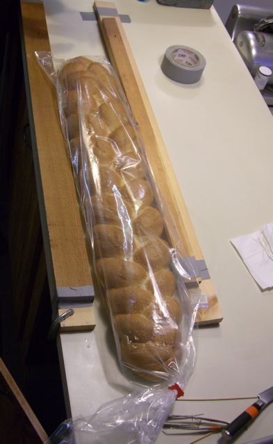 How can you tell a boy photographer from a girl photographer? From the size of their rig. Boys just love a rig, don’t they? Can’t say I mind. We put this braided baby on the slicing rig for maximum precision, and I went at it with the unmanliest of all tools, the electric knife. No guy would touch that silly thing for fear his Mancard would be revoked.