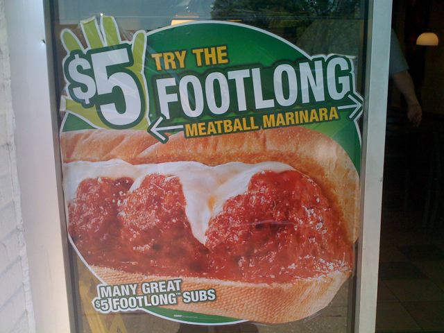 Don’t get me wrong. I am not condemning meatball subs. Notatall. No no no. But I’ll take a pass on footlong. Footlong. Footlong. Footlong. The word itself is utterly weird. No thank you. Six inches will do.