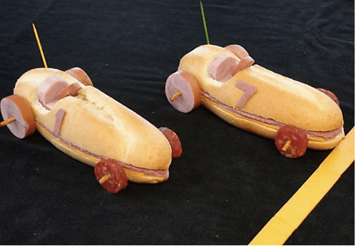 Sandwich art cars. Small enough to eat. Small enough for a mole to eat. A mole with a bit of perseverance. If these things do in fact roll, the mole will also need to be swift, munching as it scampers.