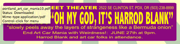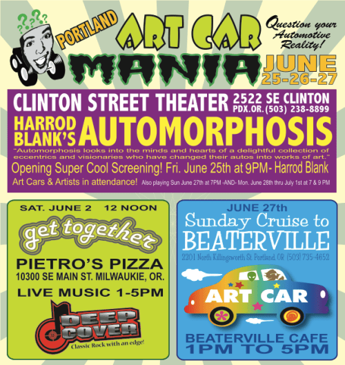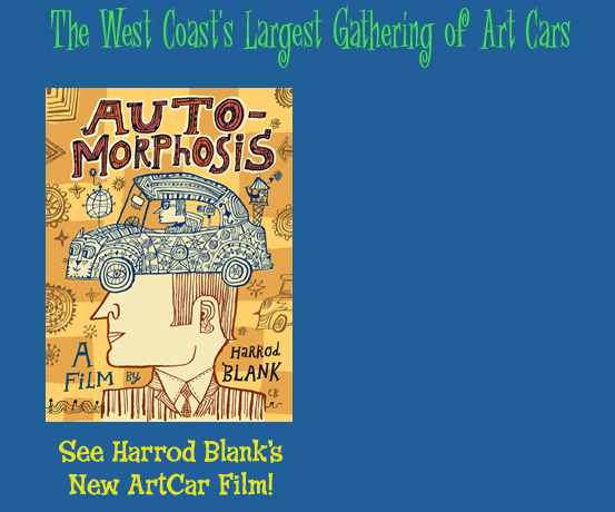 Harrod Blank does not seem to do anything small. I’ll take two, says he, and make them extra large. He’s got a mountain of art cars dying to be scaled by you.