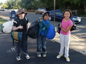 Nick Dubois, Teddy Telzrow and Saleha Hoffman await the bus, October, 2010