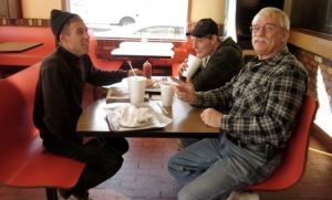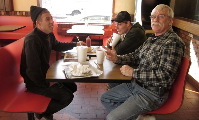 Good place to meet a real man, I’d say. I’ll say! They said, “No one has wanted to take our picture in a long time.” Nudge, wink, nudge, slurp. They looked happy and at home. Bet they have clocked some hours in that orange booth.
