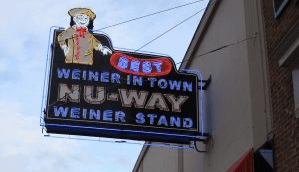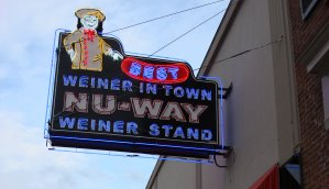 Has a scrambled dog called a Pylon. A mountain of griddle fried hot dogs, chili, slaw, cheddar, mustard, chopped pickles, onion, jalapenos, and oyster crackers on a sweet waffle. Sounds weird, but it is one of the things that has made them famous, and people love it. They cure their own bacon, grow their own herbs, and even have a smoke house out back.