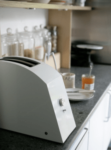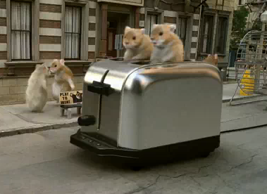 Now THIS is a life well lived. Freddie Yauner (is that Yawner? as in, height of irony? unless, of course, one finds rocketing toast to be a yawner. personally, i find it fascinating. toast itself is a yawner, which is what, of course, makes it so fascinating. fascinatingly dull.) must have spent hours and hours and hours engineering a toaster that sends toast up, up and awaaaay. it does come back to earth, as almost all things do, and NOT EVEN TOASTED. Ha. That is what I call a life well lived. that part anyway.