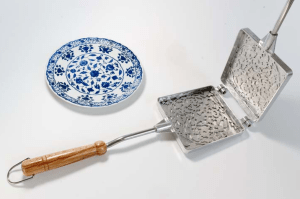 Next up, a large, round Delft pattern rubber stamp to transform simple paper plates into Delftware.