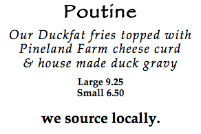 Focus your audio, folks, poutine is everything plus. It’s badass when it’s bad – with the cheap stuff, squeaker curds and jello gravy – and badasser when it’s good, dressed up posh. Local babes dressed to kill ya with fat and more fat. Sustainable, baby.