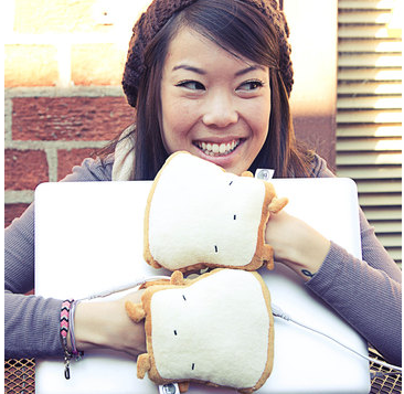 Boys glow too, of course, but most would not be caught alive and living in toast mitts. A toast muff, I’m thinking, would be swell for clandestine hand holding, hold the butter.