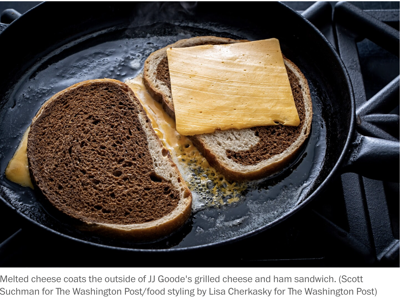 With a lovely balance of sweet and tart, J. J. Goode, recollecting his father’s fathering – and musings on his own parenting puzzles – created this sandwich. I love it for a quick and deeply satisfying supper. The cheese is on the outside, people, all crunched up into frico, and on the inside, too, of course.