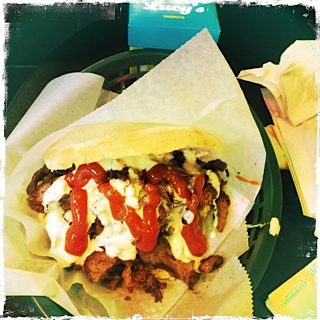 Keith chose fried not grilled. Ahhh Repahhhhh was it good. Slippery little devil too. Greased lightening. NOW I get it, why a person might dream of an arepa.
