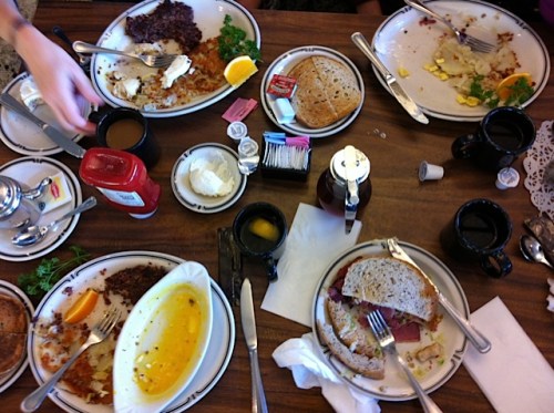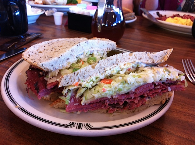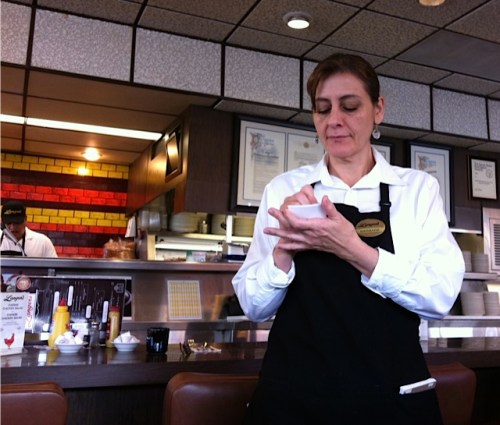 Ordering a little love to ride? “Pastrami on rye with mustard ONLY,” requested Linda. “Get it right or pay the price,” said Nancy. She knows. She’s been married a long time. “Yeah,” said Lynda, no dummy herself, “I don’t want to scrape anything.”