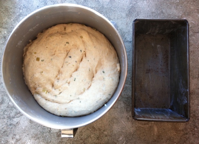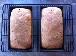 Grease two 9×5-inch loaf pans and set the dough in them, seam side down. Cover with the tea towel and let the dough rise again until it is almost double.