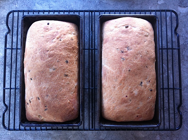 Bake the loaves in the center of the oven for 10 minutes. Reduce oven temperature to 350 degrees F and bake for about 30 more minutes. The bread should be nicely browned and sound hollow when you tap on the top.