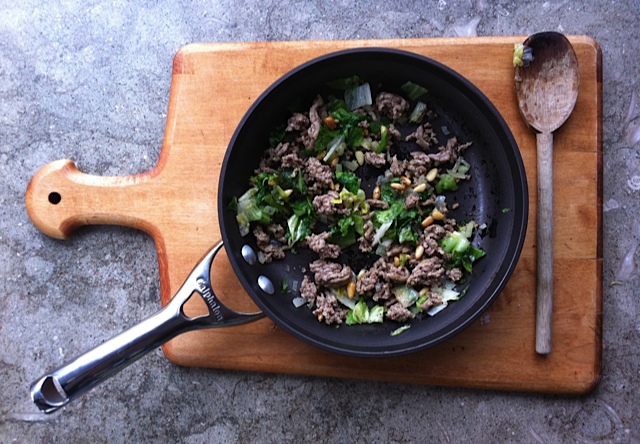 Remove from heat, stir in the lamb and pinenuts. Taste and then season with salt and pepper if you feel it is needed.