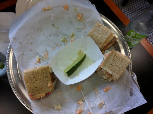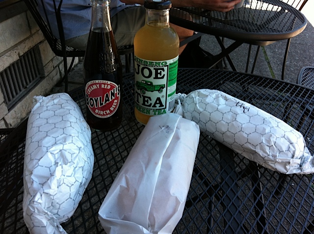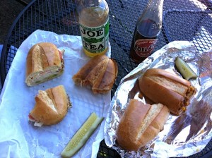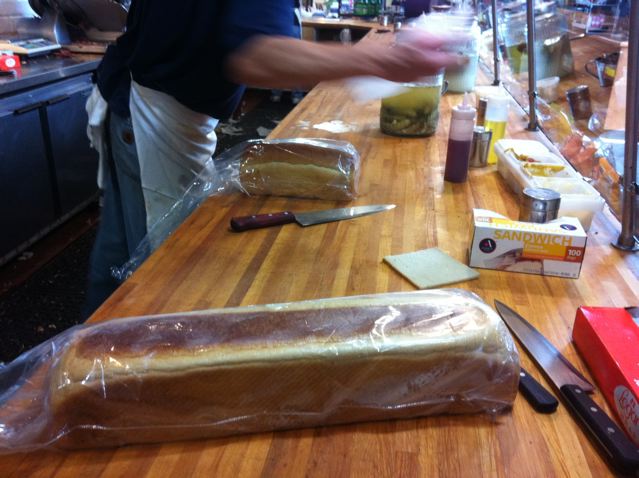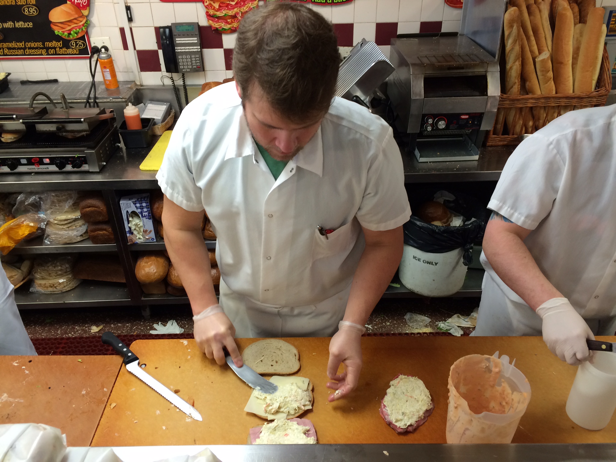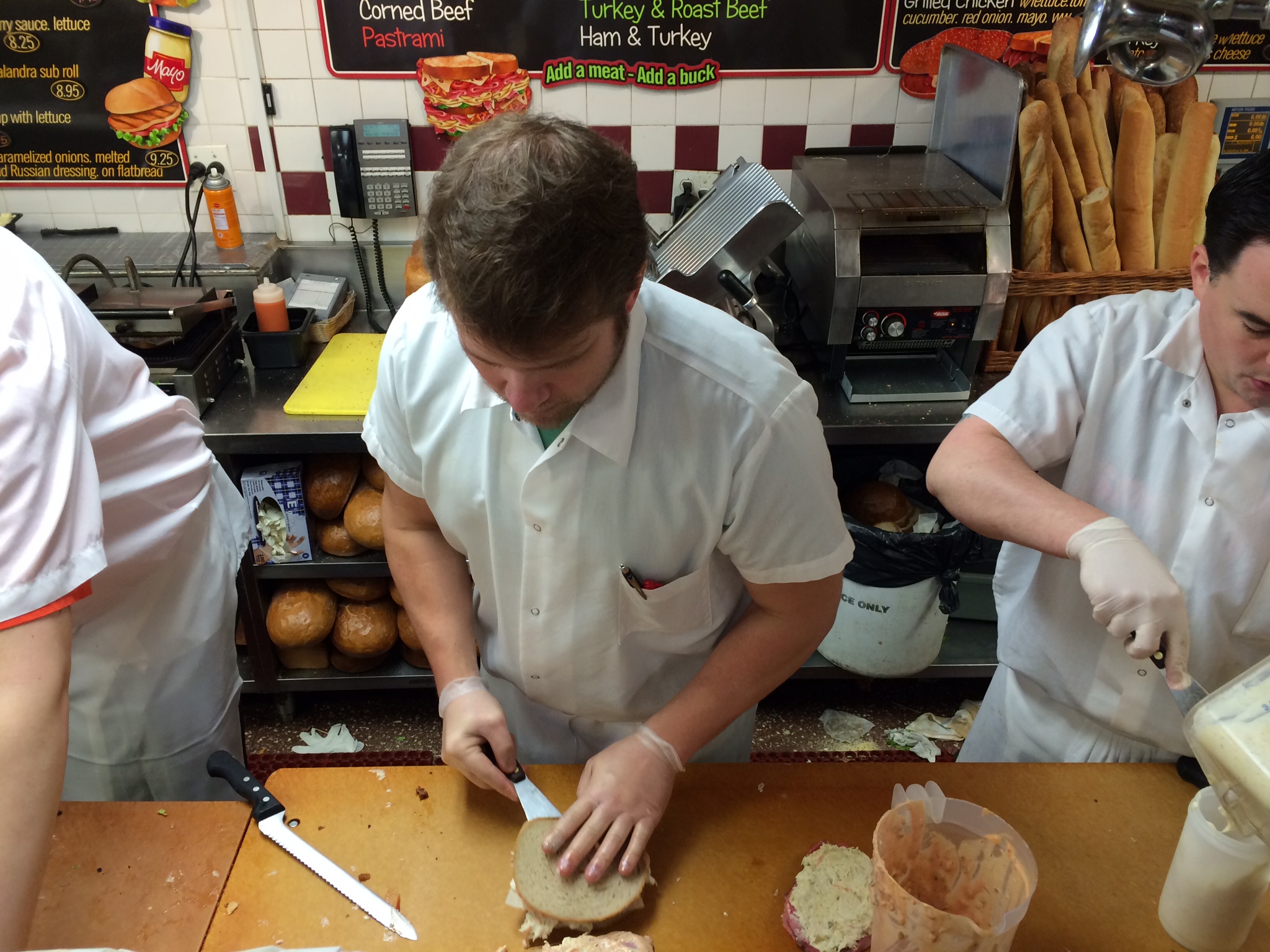 If you’re a religious reader of Lisa’s blog (that is, on your knees, begging for forgiveness), you’ve heard about the New Jersey Sloppy Joe before (all hail the Milburn Deli). Not a mess of ground beef and tomato sauce, but a triple-decker cold cut ‘wich. Best-man (twice!) James provided a long exegesis a ways back, but here I was this week and it was as good (and exactly he same) as my first, 45 years ago. How do they do that? Like this: