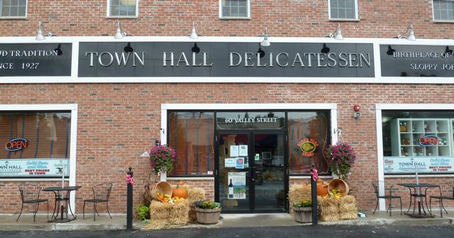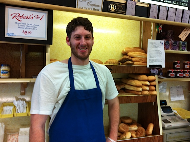 In six degress of Kevin-Bacon-Lettuce-and-Tomato-Land, Fanny Slater is the fine, fine sandwich eating niece to My-Main-Sandwich-Man-in-New-York, JAF. Kind enough to clue me in, MMSMINY, sent along the link to the Sandwich Hall of Fame episode featuring the MILBURN DELI. The MILBURN DELI. Shouting it: The MILBURN DELI. Thank you, JAF. I am righteously indebted.