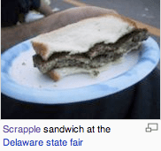 Thanks for the shout out and representing scrapple. Ahhh the memories. Suffering through Sunday morning mass at Immaculate Heart of Mary church, returning home to watch the 3 Stooges and then breakfast. Runny eggs, scrapple and english muffins. My Dad puts syrup on his scrapple – I never quite got that.