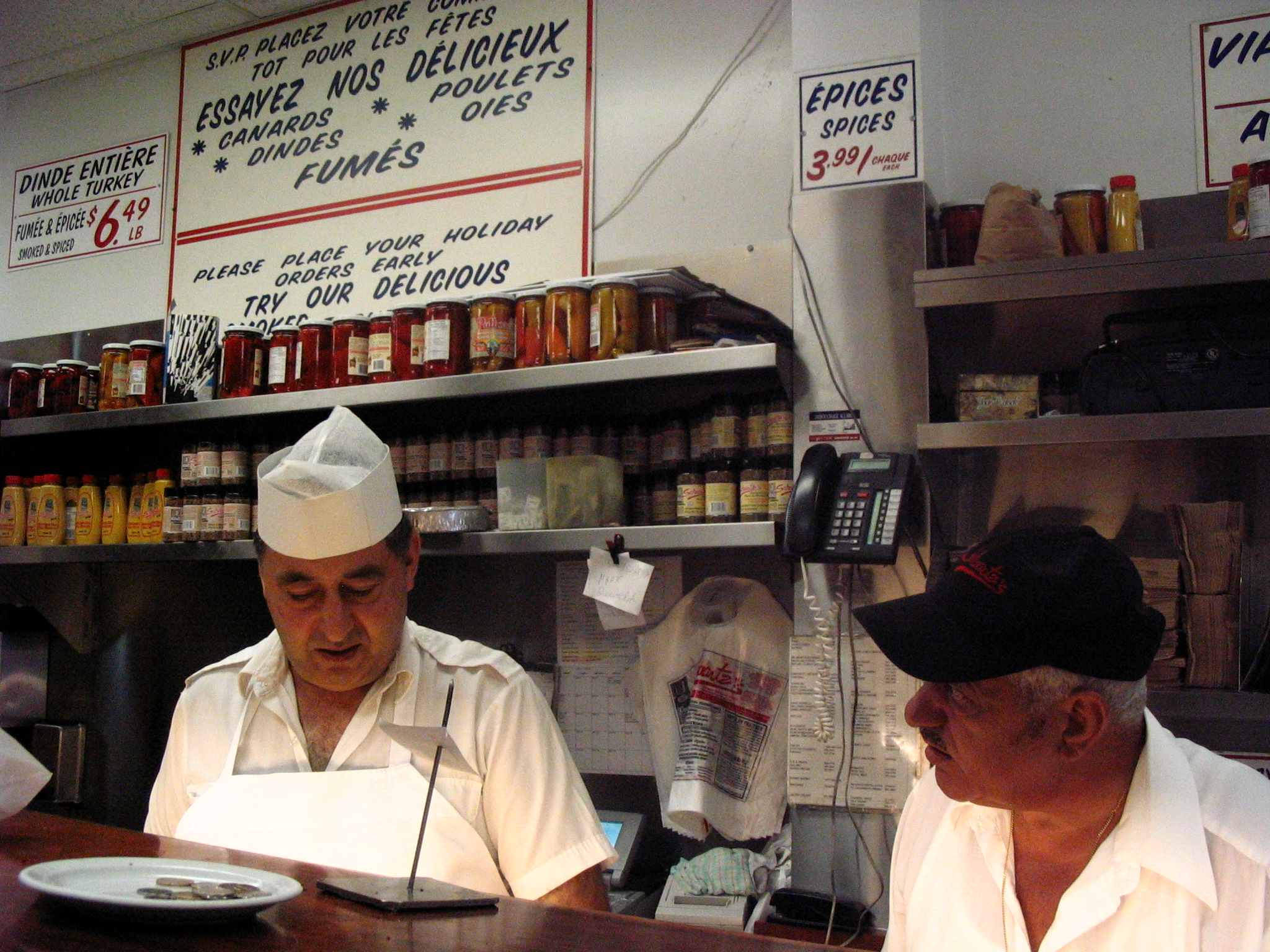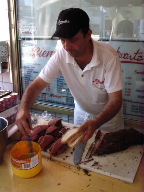 The Schwartz smoked meat sandwich seems to be basic on first sight: a heaping stack of sliced smoked meat barely contained between two pieces of rye bread that are lathered with plain yellow mustard. But the sandwich’s humble appearance is as deceptive as the deli that houses it. Take a closer look and one will notice the fine distinctions that make this sandwich the crucial centerpiece of a larger dining experience.