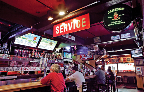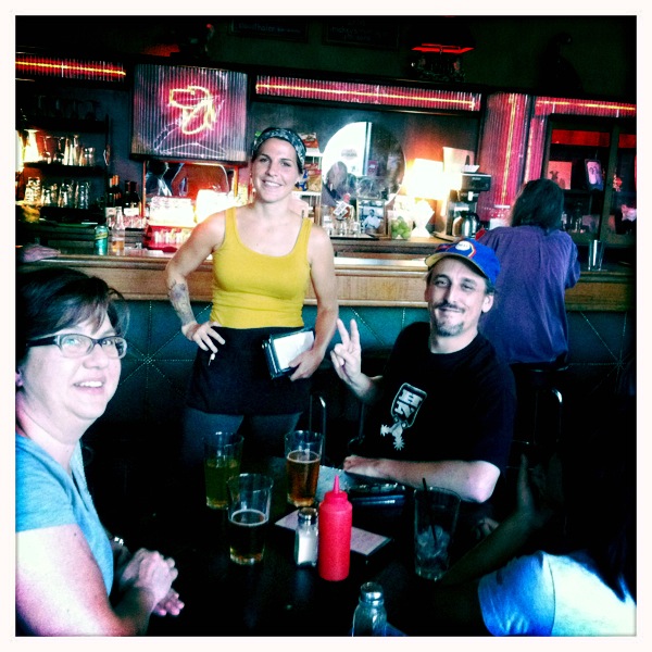 To call that order, ok, here we go. 3 BRATS, 3 STEAKS, 2 WITH, A BRAT COMBO TO RIDE, 1 FRY TO RIDE, 3 FRIES, ORDERING! And then you hadda listen, hear, and also listen and hear the pile swarm pushing crowd calling for food. Those on the grill, they called it back 3 BRATS, 3 STEAKS, 2 W CHEESE, A BRAT COMBO TO RIDE, 1 FRY TO RIDE, 3 FRIES, no name, you knew it was yours by memory and you grabbed it. Then push it forward, reach for the money, big smile, tight t-shirt, cash drawer bangs open, change returned, all math in your head, and SHUT, tip? tip? tip?, aww we pool em, in we go. Next!