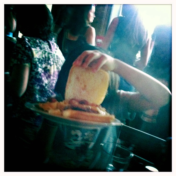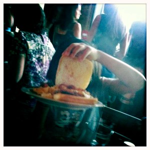 The Br..haus – such a clunker of a name, as a mother-of-a-son I’m mortified – did serve some fine fine sandwiches. Only only only after a series of steps. An order. Could be shouted to you over a crowd, say it’s a Thursday or Friday night and Regalia is playing, or a Saturday and the Badgers are playing. Shouted. Okay, I got it. A burger/brat combo to go, 3 steaks 2 with cheese, 3 brats, 3 orders of fries to stay. Kay, that’s simple. We don’t write it down here, we don’t ring it up, we call it, we hear it back, we grab it, reach for your money, big smile, tight t-shirt, cash drawer bangs open, in we go. Next!