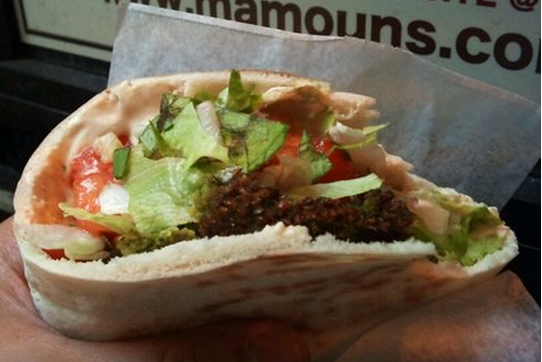 Taim uses better ingredients, and the King of Falafel makes crispier chickpea balls, but Mamoun’s still serves New York’s quintessential falafel sandwich. The ingredients are evenly distributed throughout the pita pocket, and it’s not overstuffed — you can actually eat this like a sandwich, without using a fork or making a monster mess. The balls always have a nice crust and pleasantly crumbly texture inside, and the tahini is thick and creamy. Although it’s easy to be a snob about falafel in New York, Mamoun’s deserves some credit for turning out a consistent product. It is, quite possible, the most famous falafel stand in the country.