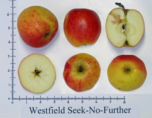 Creamy yellow, firm, medium-grained, crisp flesh rich, complex and distinct flavor. Fruit medium size, uniform. Skin is a beautiful, smooth deep yellow or greenish base, shaded red. Flourishes in well-drained, gravelly or loamy soil.