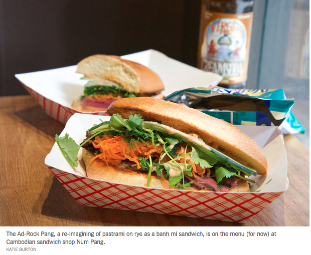 3. Assemble the Ad-Rock Pang: Wrap the pastrami in a paper towel and microwave on high in 20-second increments until it is warmed through (or steam the pastrami on the stovetop until it is warmed through). Spread the chili Russian dressing inside of each baguette, evenly coating both the top and bottom sides. Divide the pastrami among the bottom halves of each baguette. To the top half, add a few cucumber slices followed by 2 cilantro sprigs and 2 dill sprigs. Add the pickled carrots on top, sandwich the two halves together and serve with potato chips, a cream soda and a pickle (if desired).