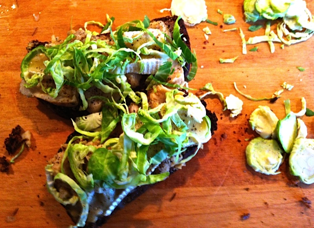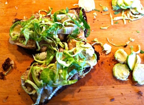 Health bread is a total mind-body work out. Unsliced as it comes, we were advised by Kate to slice it – THIN! – and then freeze. So we did, and pull it out as needed, toast it up and cover with fillings and toppings that are up to the task. Forte. Stinky cheese, shaved brussels sprouts, hot summer arugula, dense homemade blackberry jam, onion hunks and always always butter to lubricate. Once you get the hang of Health Bread you feel deprived, limp, pinched, without it.