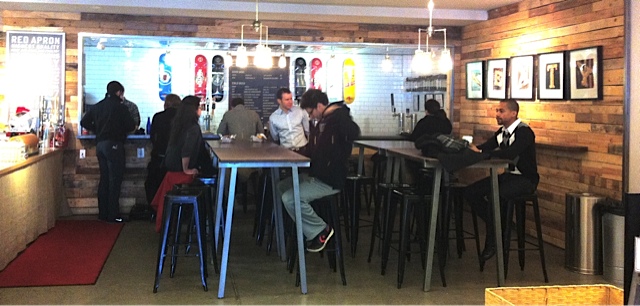 It’s nice to watch someone slice with skill and concentration. That’s how he was doing it at Neopol, not distracted a bit by the snaking Sunday morning line. Beautiful silky stuff, that salmon.