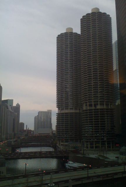 We stayed along the river, near Marina City, one of Chicago’s fine architectural jewels. My mother had been in it when it was new, not too long after 1964. Fancy!